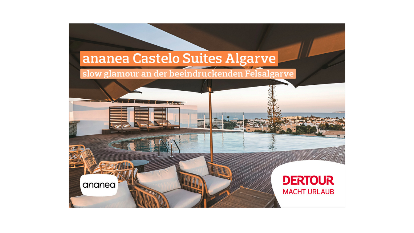 Eingebettet in die spektakuläre Küstenlandschaft der Algarve vereint das ananea Castelo Suites Algarve stilvolle Ruhe mit exklusivem Komfort. Großzügige Suiten, fein kuratierte Kulinarik und der Blick auf das endlose Blau des Atlantiks schaffen einen Rückzugsort für alle, die das Besondere suchen. Ein Ort, an dem Genuss, Design und Gelassenheit ganz selbstverständlich zusammenfinden.
